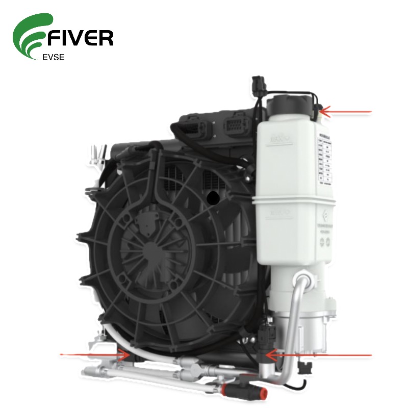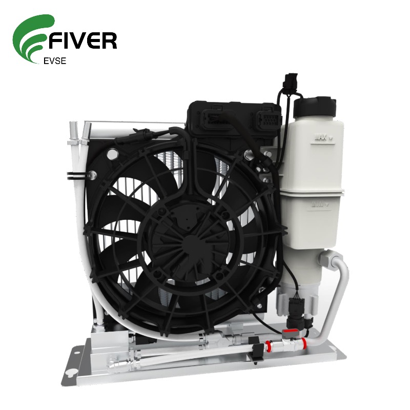 The High-Power Charging (HPC) CCS is capable of transmitting charging currents exceeding 500A, but traditional charging methods often rely on heavy cables, which can lead to overheating issues. To address this, Fiver’s intelligent HPC charging technology utilizes an advanced liquid-cooled system. This system employs environment-friendly cooling media to provide a consistent cold source for the CCS, ensuring easy maintenance and optimal performance. The cooling medium efficiently cools both the charging cable and the DC power terminal of the charging connector, while the terminal itself acts as a radiator due to its excellent thermal conductivity. A closed-loop system is established by connecting the liquid inlet and outlet pipes of the HPC Cooling Unit with those of the CCS. A circulating pump drives the cooling medium through the system, absorbing heat generated during charging and transferring it to a radiator, which dissipates the heat using an electronic fan. Real-time temperature sensors at the inlet and outlet allow the system to adjust the pump and fan speeds dynamically, ensuring precise heat dissipation and keeping the CCS within its optimal operating range. This intelligent thermal management ensures the safe and stable operation of the HPC charging pile, even under the most demanding conditions